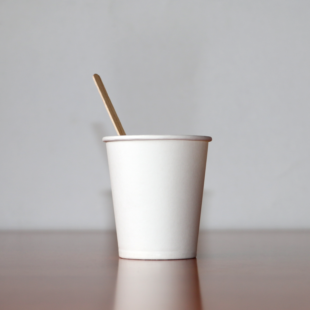 Conjunto de consumíveis para casa ou escritório composto por 10 copos cartão e 10 paletinas
